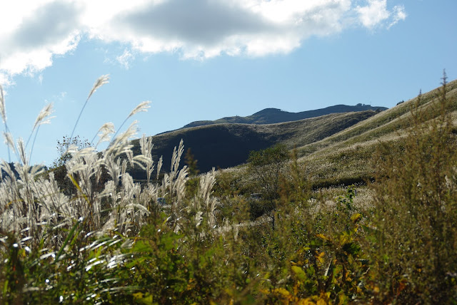 大門街道を登り湖面を眺め進むみ右に折れると霧ヶ峰へのドライブ道に出る。少し霧ヶ峰に入ると一面すすきが広がり、遠くに八ヶ岳、富士山、南アルプス、中央アルプスまで見える。さらに登ると北アルプス山稜が雲海の上に見える。