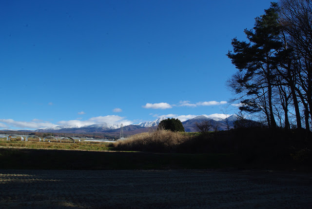 峰々が白く、時には夕日でピンクに・・・・など色合いがへんっかする。丘の白樺は葉も落ち幹と枝で風景をなす。毎年めぐる光景であるが、また今年は違う。今の時期は人影もなく静かに田畑は季節の移り変わりをまつ。今年もあとわずか、また人生の履歴を変える。